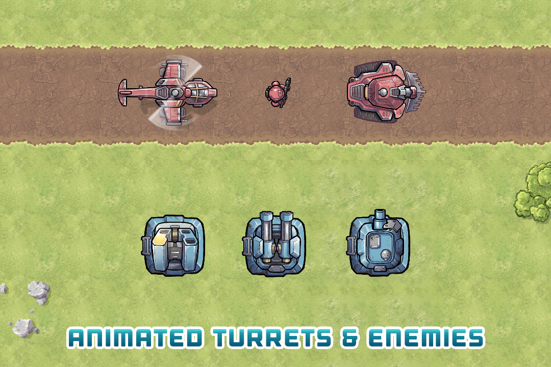 Cover illustration and game assets created for Quiver’s Godot 4 Tower Defense Template; Outpost Assault. Assets include environment tiles & props, animated character sprites, VFX, and UI design